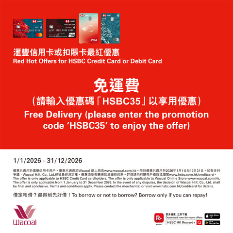 購物滿港幣500元(淨值),即可享有免運費服務。只限香港及澳門地區訂購